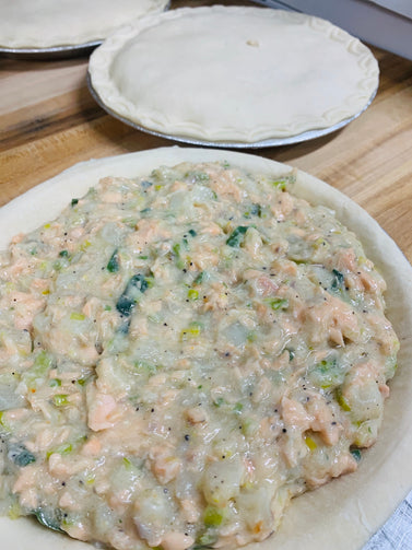 Pour les amoureux du saumon, avec poireaux et une sauce béchamel crémeuse notre secret quelque cube de pomme de terre pour faire de votre pâté un repas complet Pour les gourmands serveurs l'avec une bonne sauce aux oeufs durs.